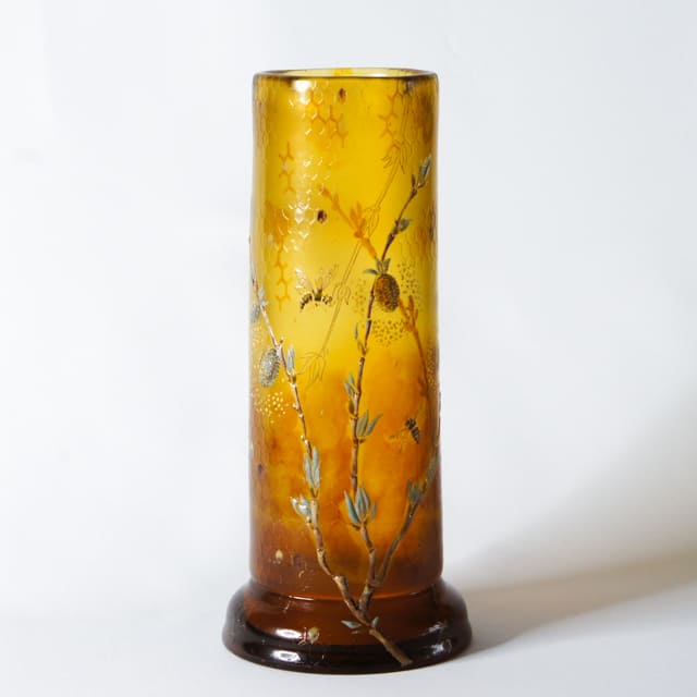 エミール・ガレ|蜜蜂に猫柳文花瓶(1890年頃)