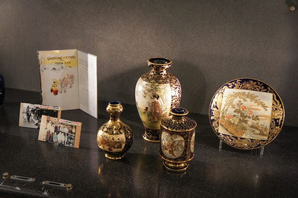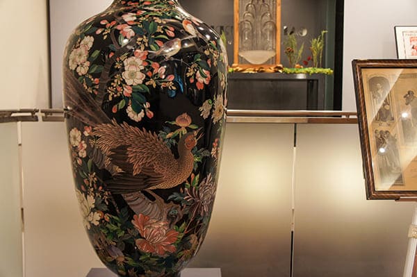 七宝焼きのほか、蒔絵や京薩摩など、当時のコレクションも展示しております。