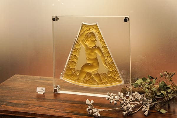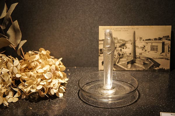 「万博」をテーマに、1925年パリ万博関連のルネ・ラリックを中心にガレやバカラなど、さまざまな作品を一堂に展示する今回の展覧会。